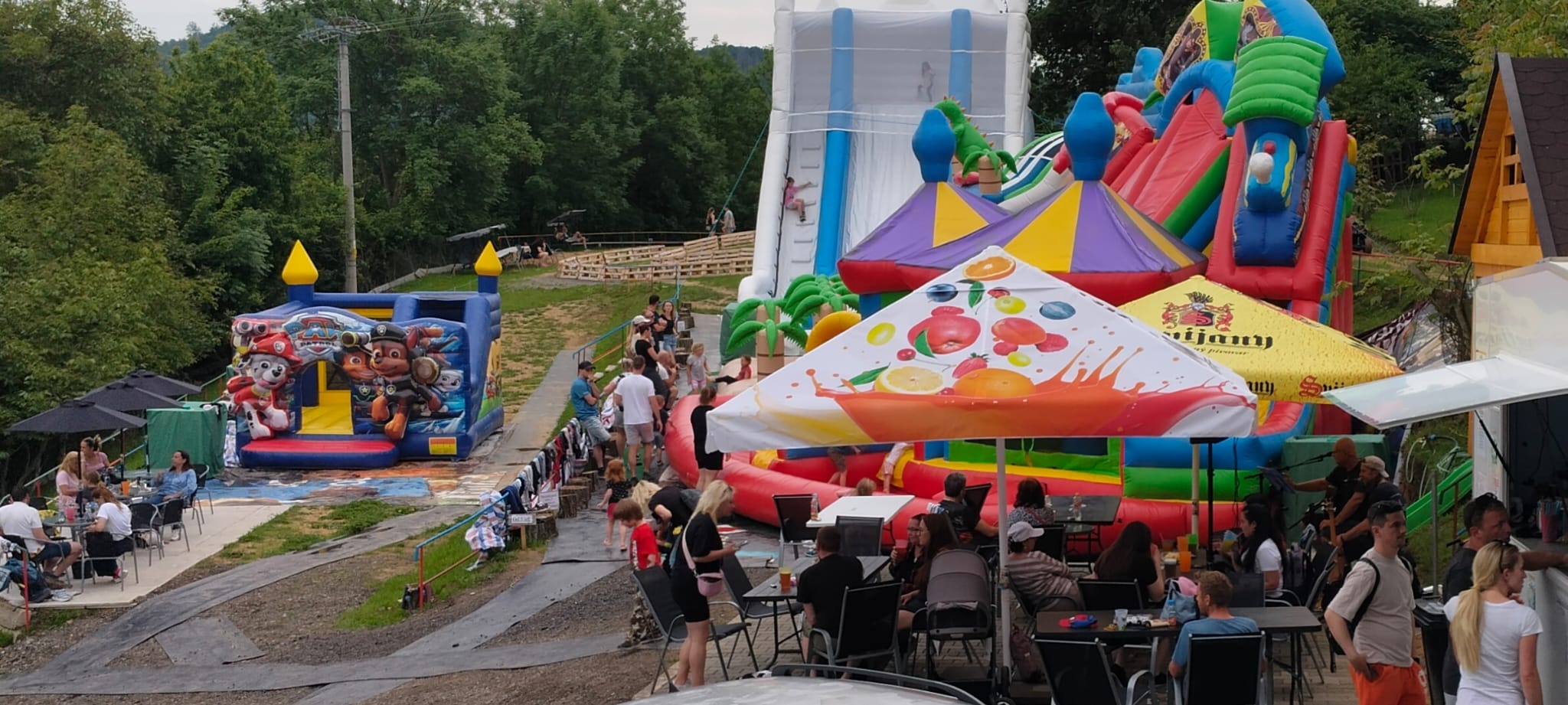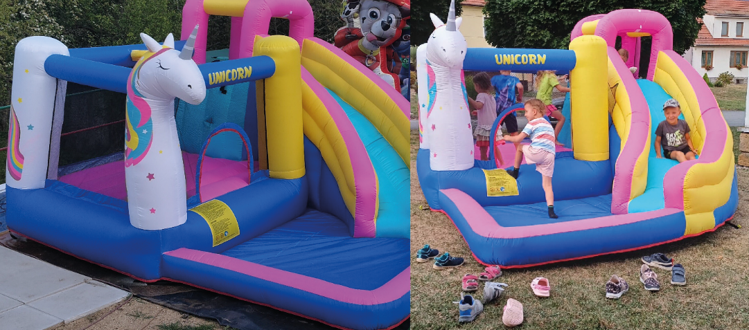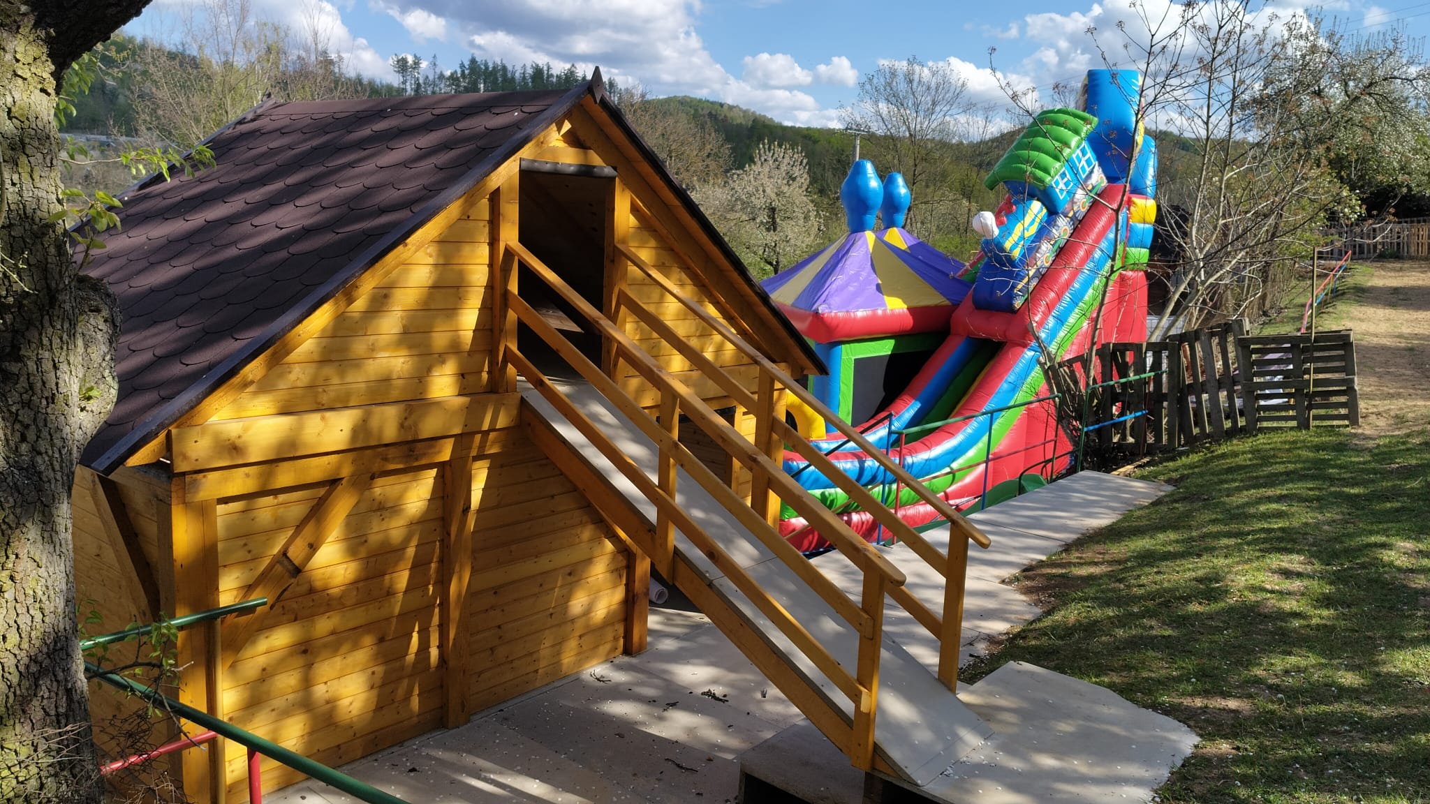 Nabízíme možnost pronájmu vlastního skákacího hradu spolu s odděleným prostorem určeným k oslavě. Prostor je vybaven výzdobou a připraven pro až 30 osob.